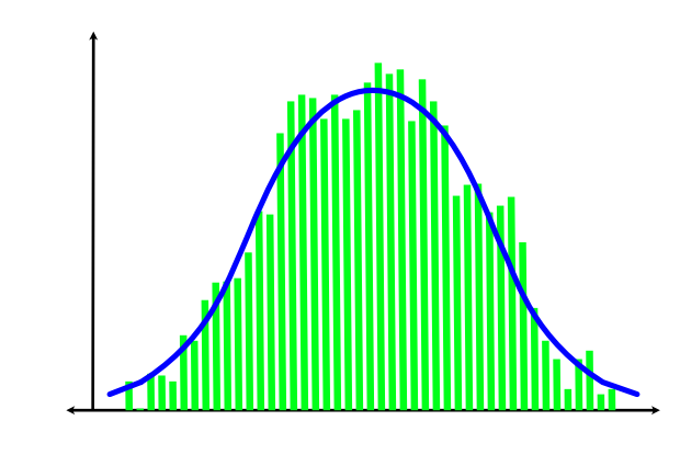 Hvis man laver et histogram over en mængde tilfældige hændelser, vil der fremkomme en kontur af grafikken. Er hændelserne fuldstændigt tilfældige, får man en figur, der begynder og slutter brat, og har en helt lige top, fordi alle resultaterne har samme sandsynlighed for at indtræffe, og man har en såkaldt ‘rektangulær fordeling’. F.eks. har lydbegrebet ‘hvid støj’ en rektangulær fordeling af frekvensindhold, for alle frekvenser optræder lige hyppigt og i samme omfang. Men rigtig ofte ligner histogrammets kontur en klokke, og så har man fat i en normalfordeling.